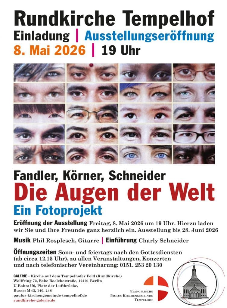 8. Mai 2026 – Ausstellungseröffnung von Charly Schneider und Martin Fandler vom Kunstforum Westerwald e.V. in Berlin Tempelhof Post Views: 6Beitrag veröffentlicht:25. April 2026Beitrags-Kategorie:KunstWeitere Artikel ansehen Vorheriger Beitrag> TSCHÜSS KUNSTRAUM <