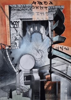 Link-FRAGE---Gallus-Tinte,-Tempera-auf-Wellpappe---85-x-65-cm,-2023